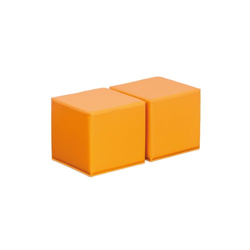 Pouf quadrati di colore arancione, realizzati in schiuma ad alta densità che assicurano la comodità nel sedersi! Questo articolo è indicato per un uso associato al porta libri acquistabile separatamente! Il materiale di rivestimento è il PVC.