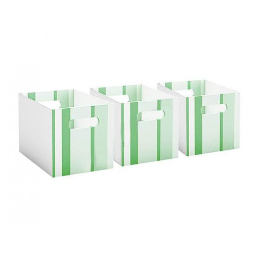 Set 3 cassetti verdi e bianchi in cartone con strisce verticali in coordinato con la libreria ‘Safari – Elefante’