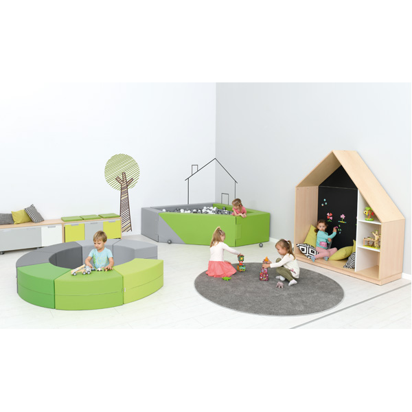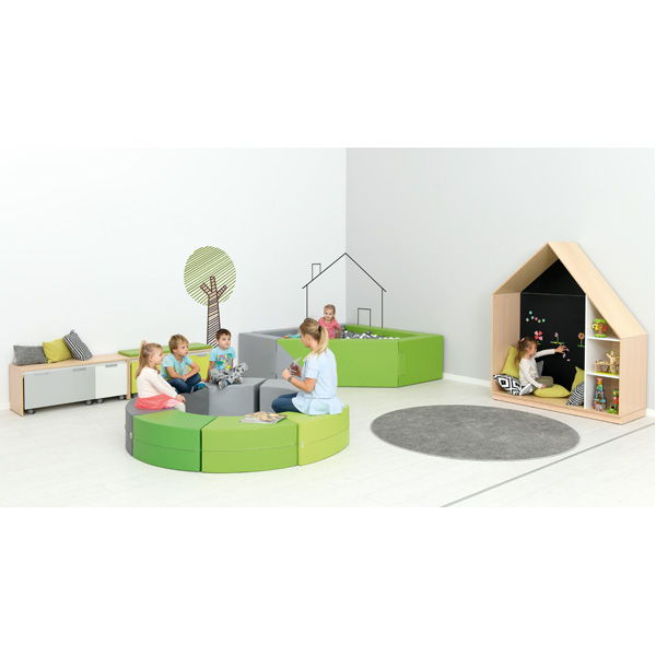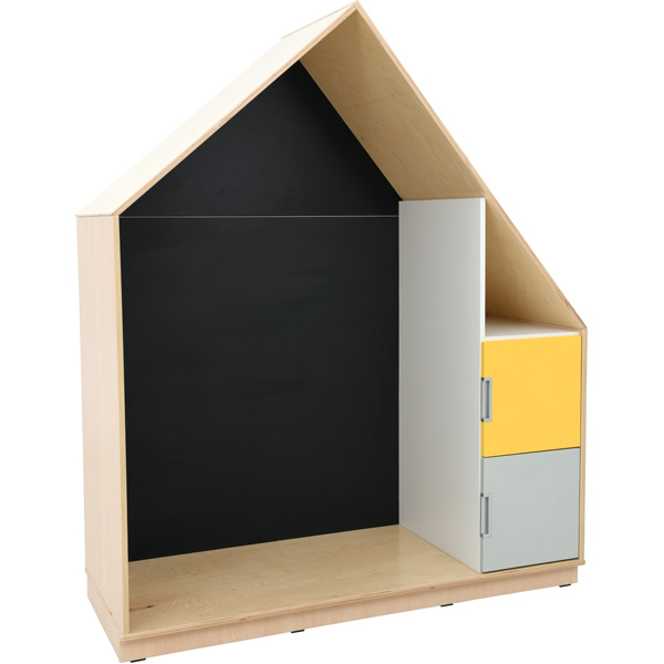 Allegra Casetta realizzata in truciolato laminato leggero ma resistente. La parete posteriore è ricoperta da una speciale vernice magnetica.