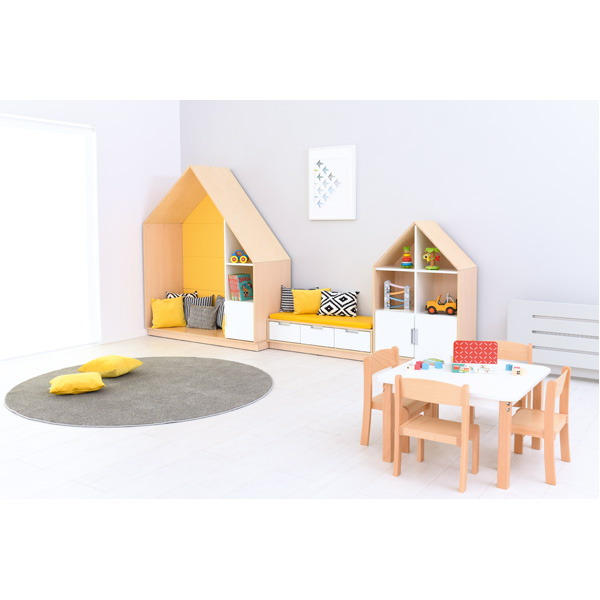 Allegra Casetta realizzata in truciolato laminato leggero ma resistente. La parete posteriore colorata darà un tocco in più all’ambiente rendendolo allegro e divertente per i più piccoli. Vastissima scelta di colori!