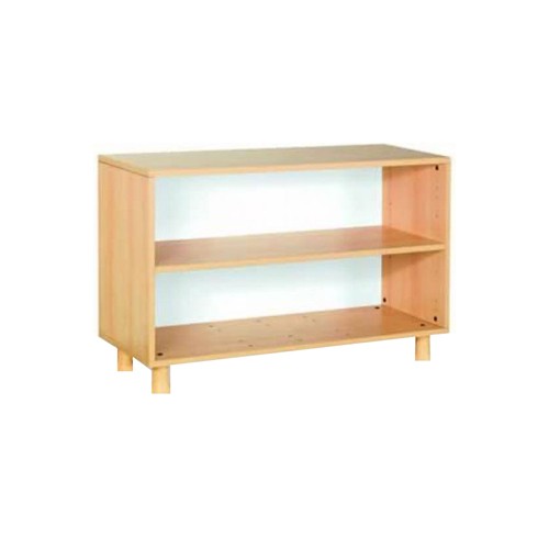 Mobile realizzato con legno nobilitato color faggio chiaro. La struttura è realizzata in legno nobilitato di spessore 19 mm con bordi arrotondati a vista. Il mobile è assemblato mediante perni e barilotti in acciaio e appoggia su 5 piedini cilindrici realizzati in legno di diametro mm 60x100h con scivolanti in ABS, per una maggiore stabilità; la schiena del mobile è in nobilitato bianco di spessore 10 mm ed è a vista per consentire un posizionamento anche in centro locale come divisore. E’ possibile su richiesta montare il mobile su ruote oppure su zoccolo.
