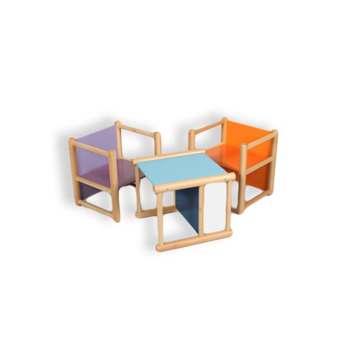 kit da 6 sedie pluriuso con struttura realizzata in legno massello di faggio tornito e seduta/schienale in multistrato di faggio, lucidato e verniciato al naturale o con vari colori (a scelta) con vernici atossiche ; tutti i bordi e gli spigoli sono arrotondati.