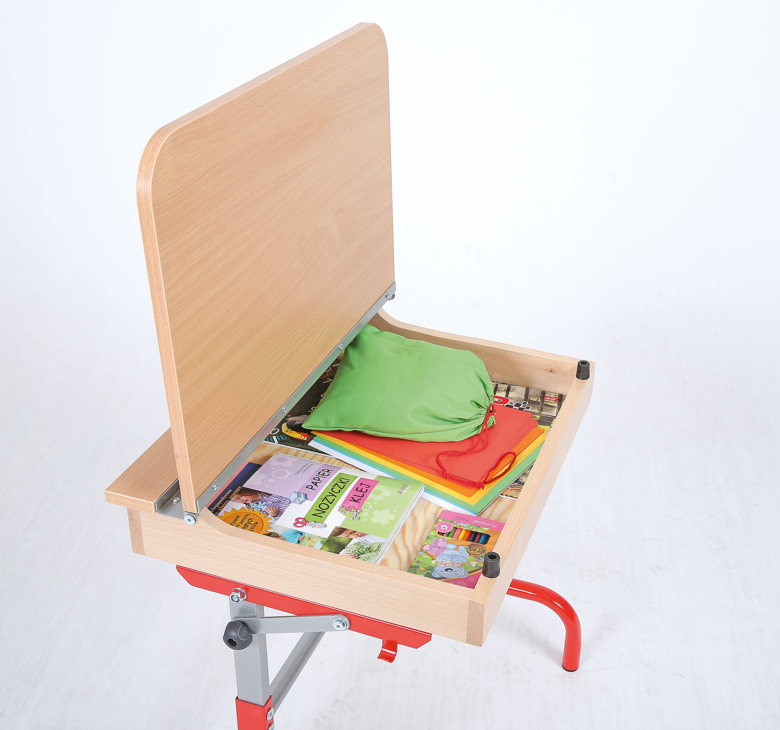 Banco Monoposto regolabile in altezza con vano apribile portalibri – Scuola dell’Obbligo