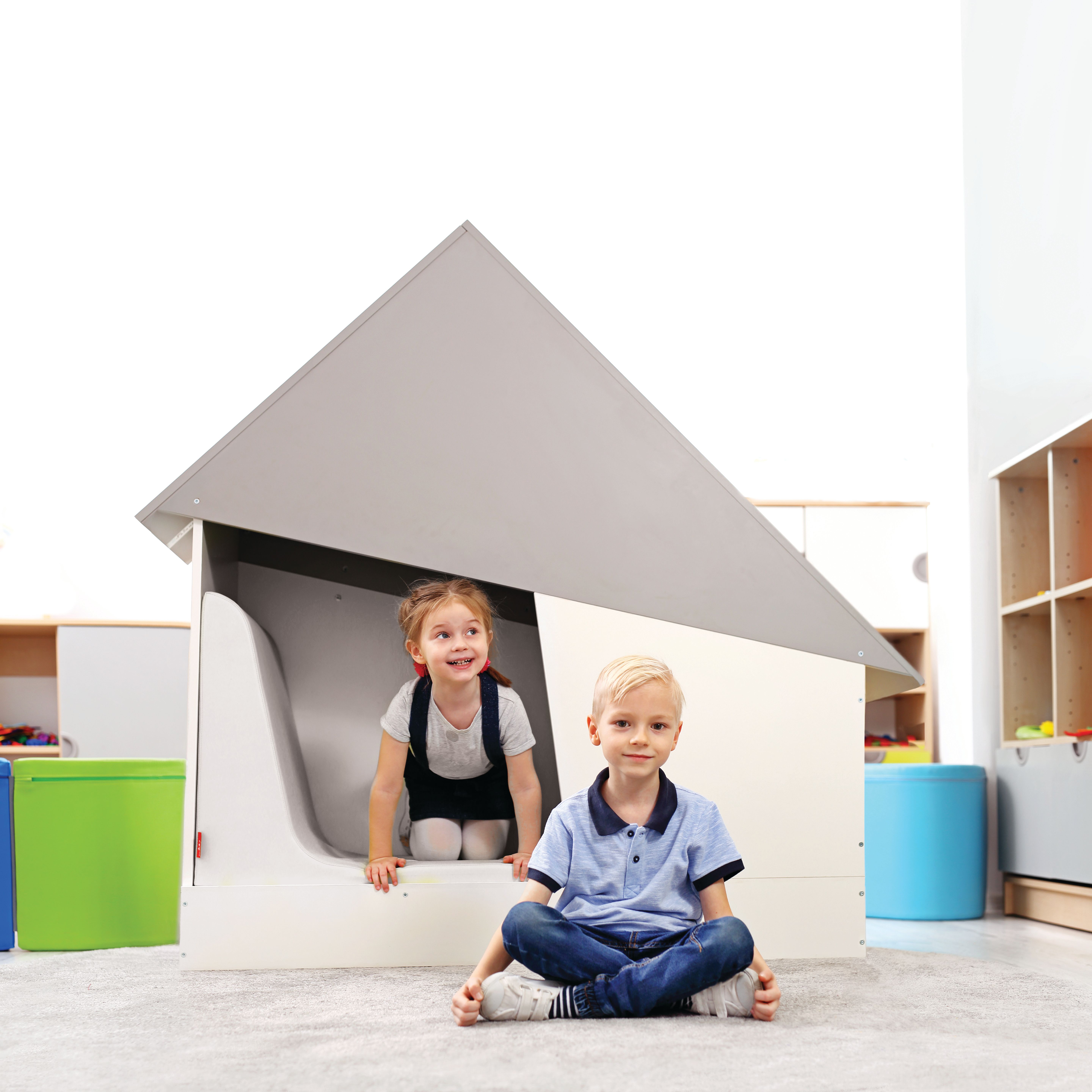 Questa casetta è pensata per essere accogliente e pacifica affinché, al suo interno, il bambino possa sentirsi tranquillo e possa aumentare la propria sicurezza. Dà la possibilità al bambino tanto di isolarsi e stare solo con se stesso, quanto di giocare in compagnia di amici o compagni di classe così da costruire relazioni socio-emotive.