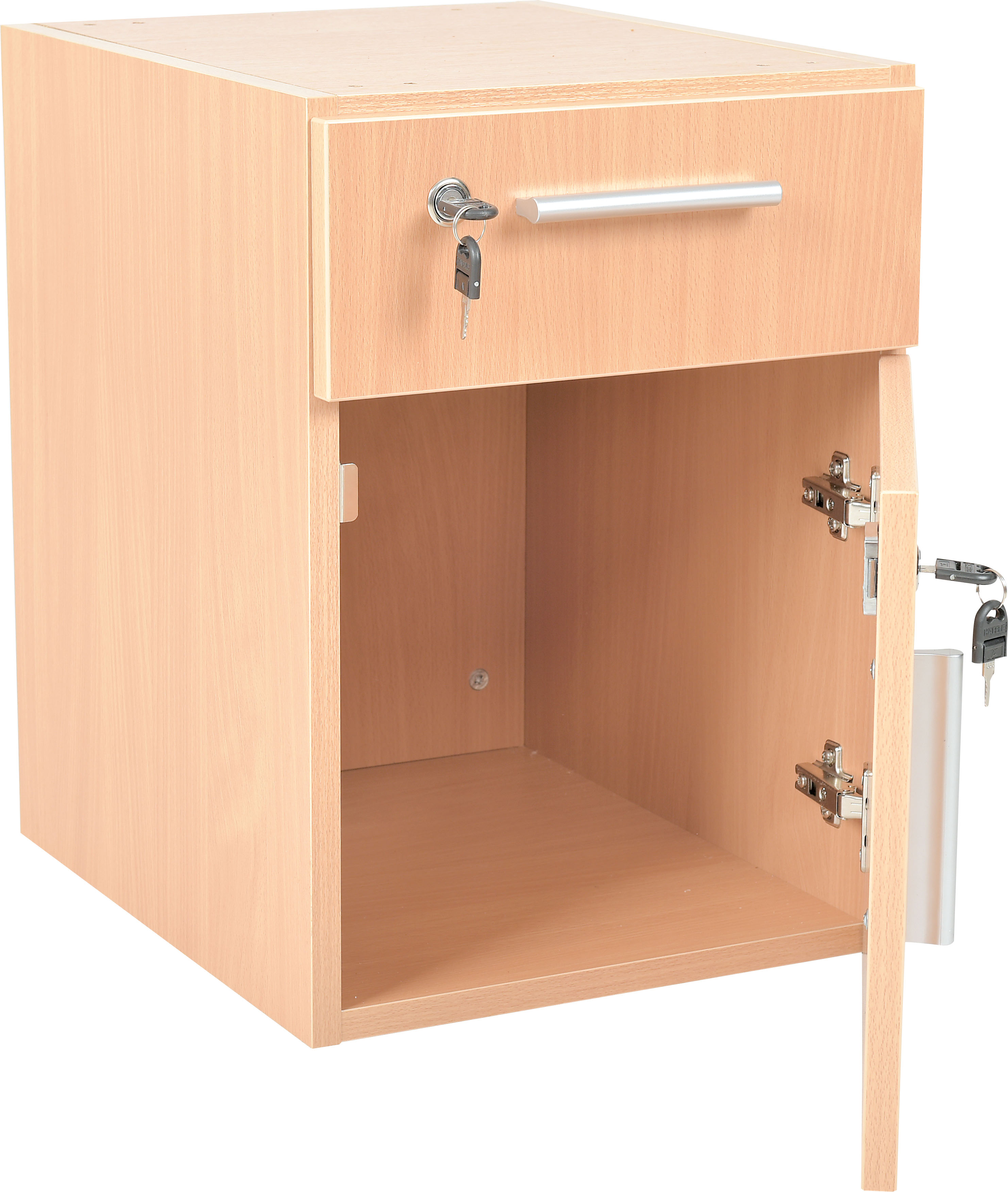 Realizzata in truciolare laminato con tonalità faggio (spessore 18 mm) e dotato di cassetto e sportello (entrambe con serratura). Gli elementi per il montaggio sono inclusi nell’acquisto