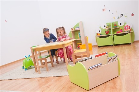 Realizzato in multistrato resistente e coi lati verniciati di un colore verde tenue. Le ruote sono di altissima qualità per una lunga durata.
