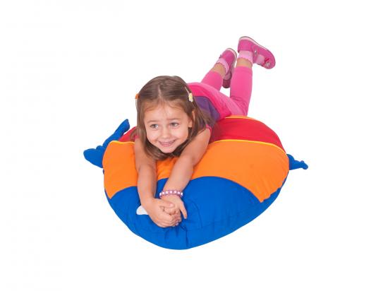 Simpatico e colorato cuscino, comodo per sedersi e perfetto per la protezione contro il freddo del pavimento.