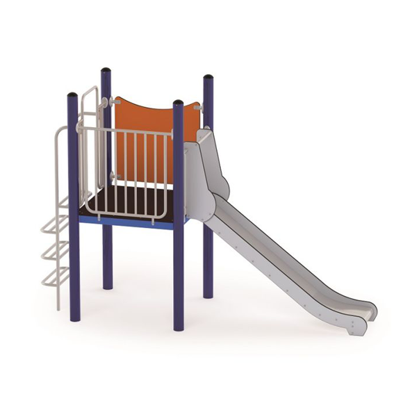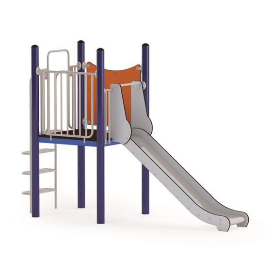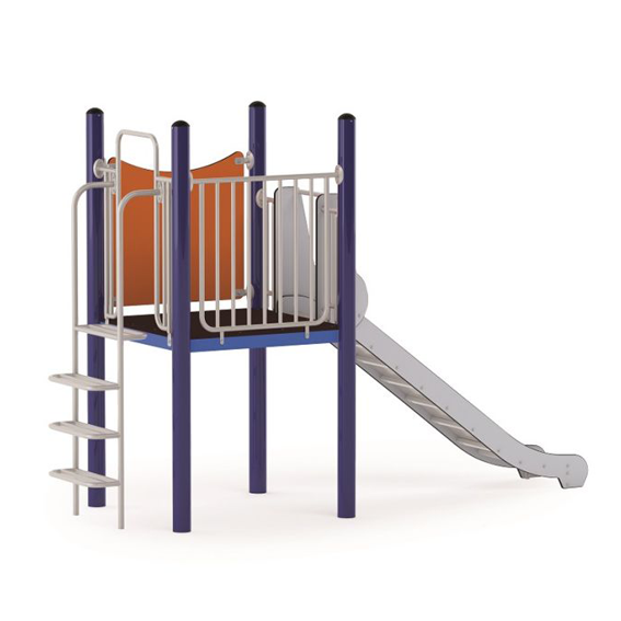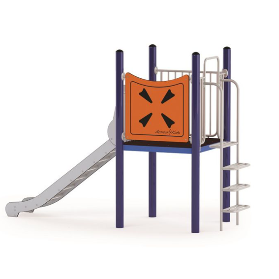 “Action4Kids” è composto da una piattaforma quadrata a 120 cm di altezza, uno scivolo in acciaio inox e una scaletta.