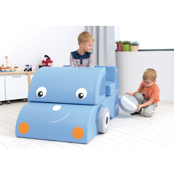 Un set di schiuma da 8 pezzi (inclusi 4 ruote e un volante) che crea una macchinina che incoraggerà i bambini a esercitarsi e sviluppare il loro coordinamento. Elementi attaccati con velcro. Schiuma rivestita in tessuto PVC resistente, facile da pulire.