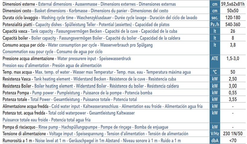 Lavastoviglie ad alta prestazione a parete singola, la lavastoviglie