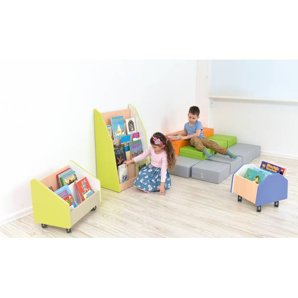 Libreria unilaterale per la visualizzazione di libri, riviste o vari materiali didattici.
