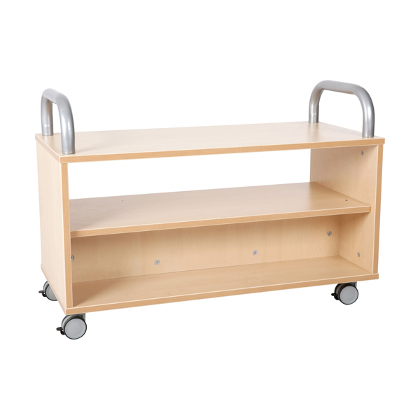 Questa piccola libreria su ruote è pensata per lo stoccaggio e il trasporto dei libri per bambini negli angoli di lettura.