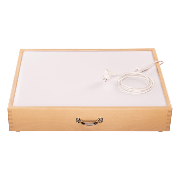 Per tecniche di creazione, giochi di miscelazione del colore e posa immaginativa con materiale trasparente. Un altro grande vantaggio: le dimensioni di queste scatole luminose si adattano perfettamente alla sabbiera, cioè la luce splende attraverso il fondo di vetro della sabbiera e fa risaltare molto bene i motivi e le tracce verniciate.
