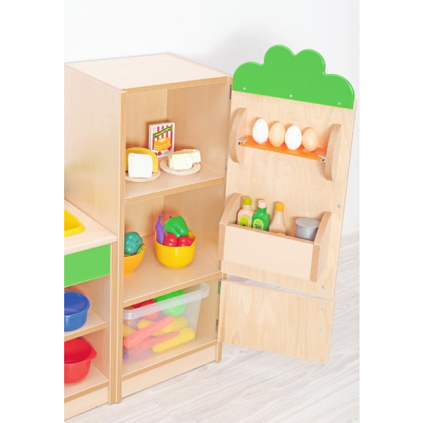 L’angolo giochi Hania è composto da frigorifero, piano cottura con lavello, lavatrice e armadio con forno a microonde.