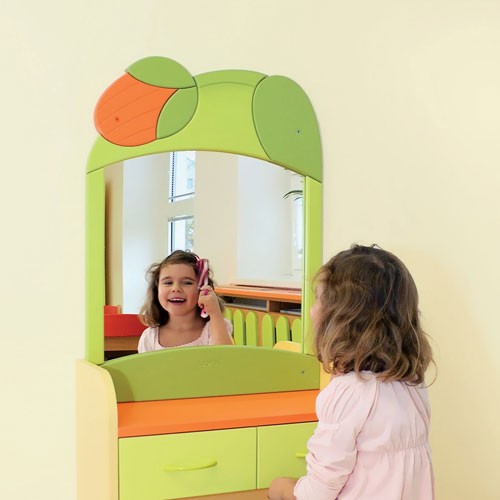 Un grande specchio in un telaio tematico adatto anche agli spazi più piccoli. La superficie dello specchio è dotata con una pellicola di sicurezza.