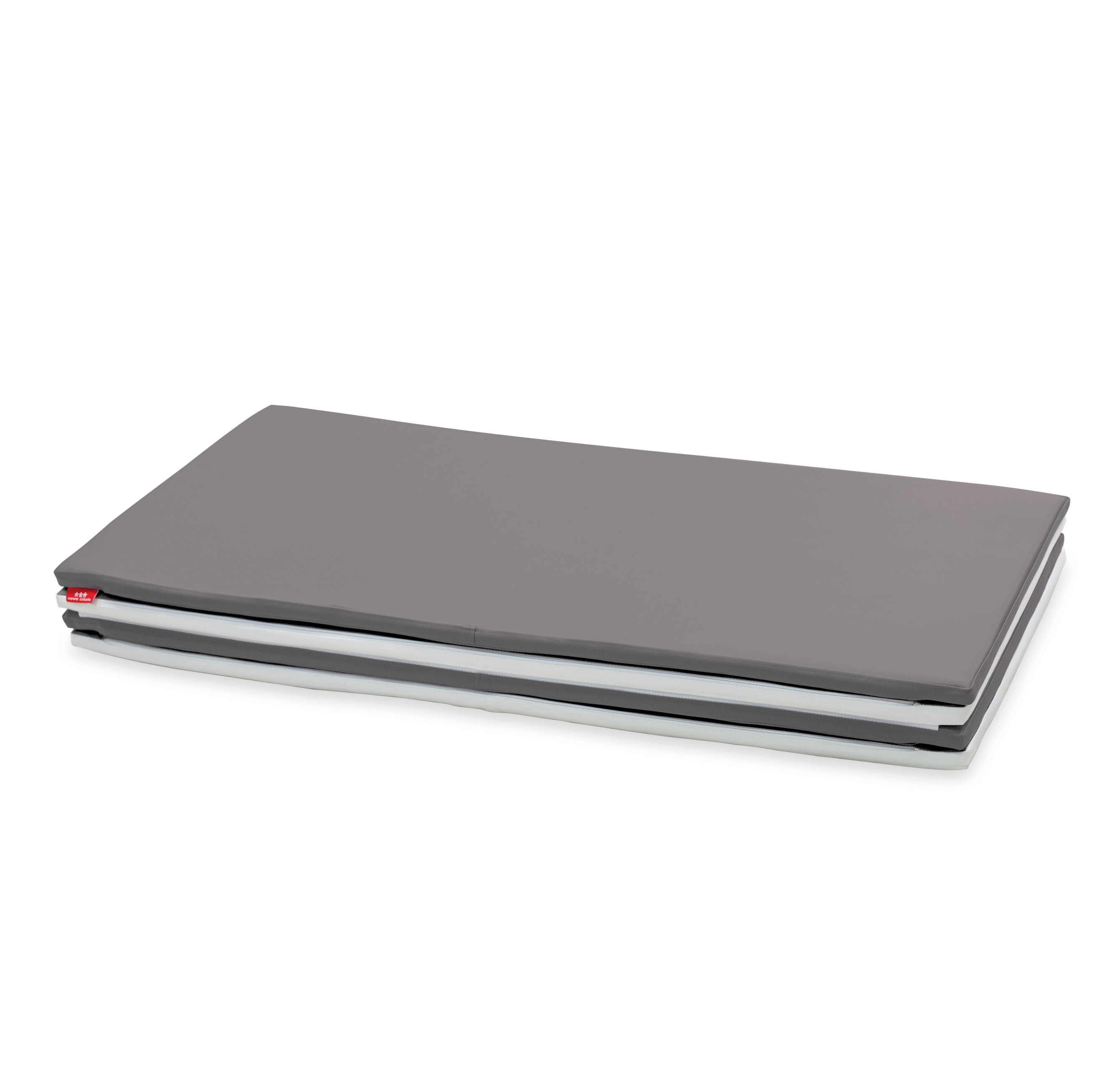 Materassino di forma rettangolare e di colore bianco e grigio. Realizzato in PVC privo di ftalati facile da lavare, pulire e disinfettare. Il prodotto è riempito al suo interno con poliuretano espanso con densità aumentata.
