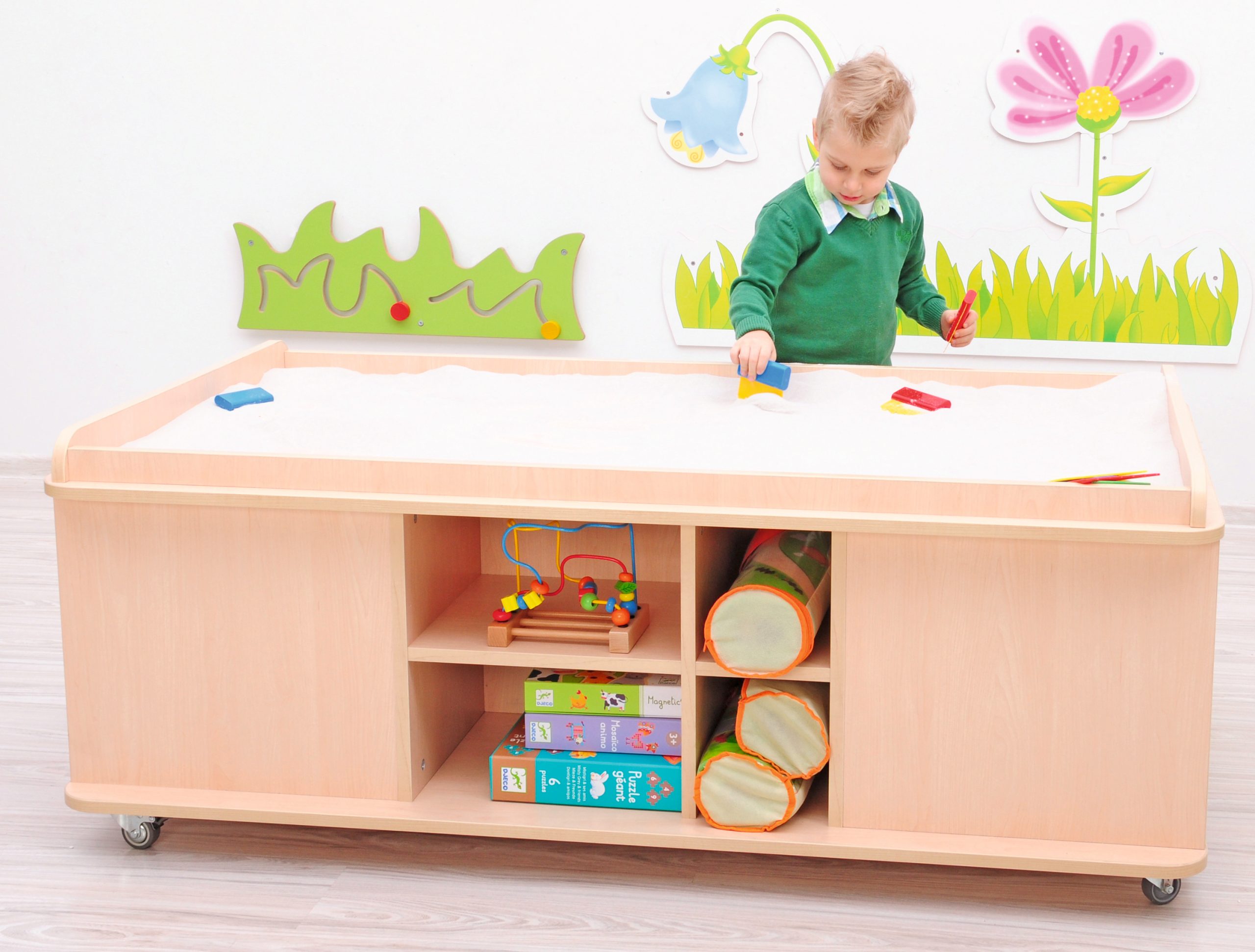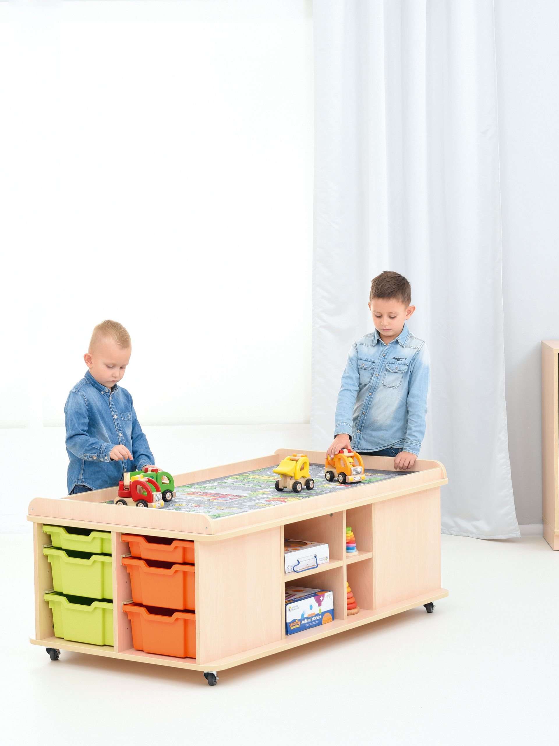 Può essere riempito con sabbia asciutta in cima. Play mat City e Zoo possono essere posati sul tavolo da gioco.