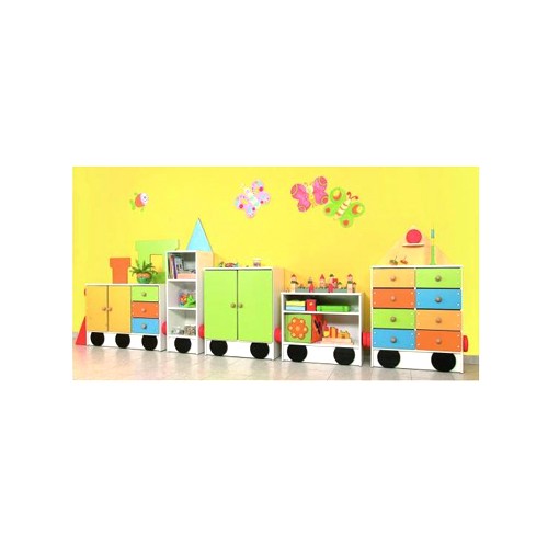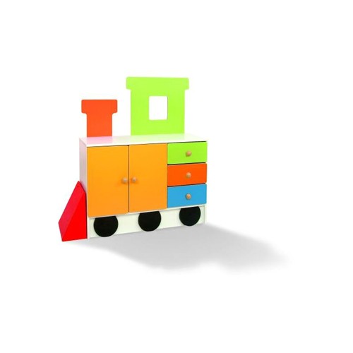 Il mobile Locomotiva offre molto spazio per i vestiti, giocattoli e altri piccoli oggetti, ed è anche un rivestimento murale decorativo.