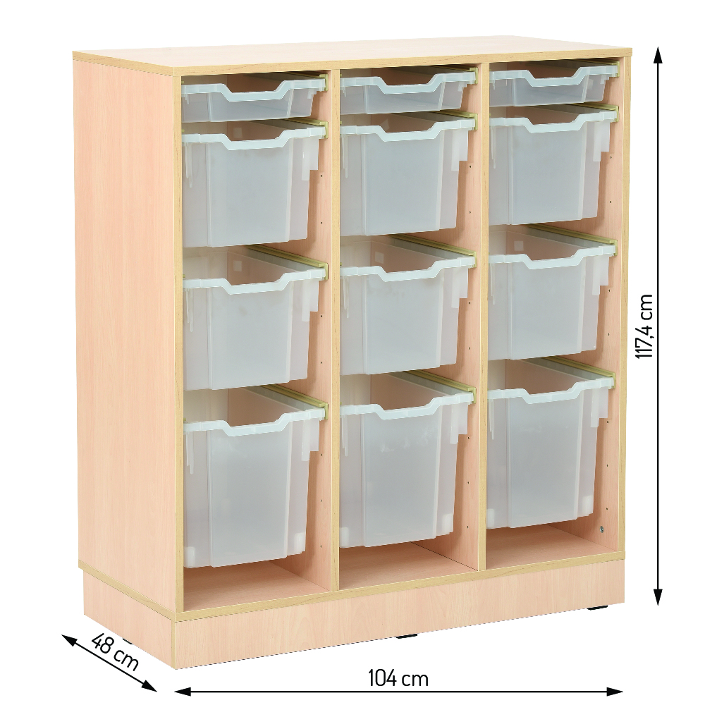 Mobile realizzato in forte laminato con uno spessore di 18 mm dotato di cassette colorate in plastica dura. Facile da pulire, questo mobile oltre a dare un tocco di colore all’aula può contenere tanti oggetti di piccola o media grandezza. Grazie alle cassette colorate i spazi sono divisi e ogni bambino può avere la sua. I contenitori di plastica sono disponibili in più colori. Per quanto riguarda il mobile i colori disponibili sono color acero (come in foto) e bianco ( su ordinazione) .