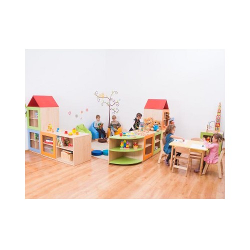 I moduli si possono combinare per composizioni divisorie a tema creando così varie zone di attività e allegre ambientazioni.