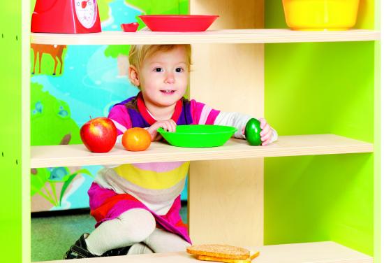 Il colore verde delle pareti rende il gioco allegro e dona un tocco di colore a tutta la stanza.
