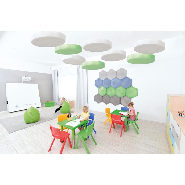 La superficie di un pannello del soffitto è di circa 0,38 m2, tre pezzi risulta in una superficie fonoassorbente di oltre 1 m2. La pulizia viene eseguita con la spazzola morbida di un aspirapolvere o con un panno umido (non pulire mai con acqua o usare candeggina).