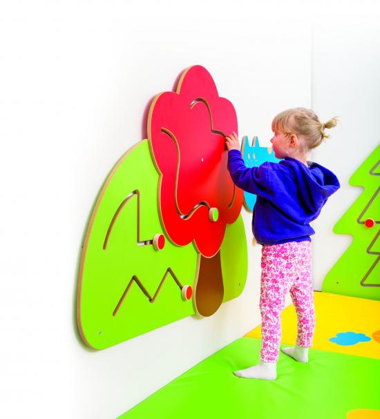 Pannello didattico dai colori accesi in grado di intrattenere singoli bambini o piccoli gruppi che possono giocare e apprendere insieme.
