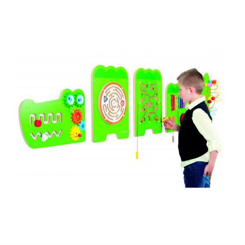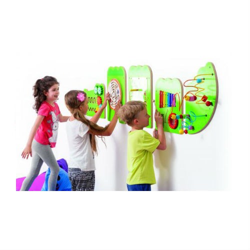 Pannello di cinque pezzi, ognuno con un diverso set di attività, tutte progettate per favorire la coordinazione degli occhi e le competenze motoristiche.