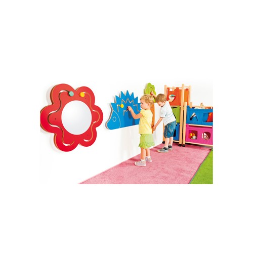 Simpatico labirinto a forma di fiore realizzato con MDF ( pannello di fibra a media densità) munito di uno specchio centrale che può essere molto utile negli esercizi logopedici. Il labirinto è percorribile da due manovelle che si spostano grazie all’intervento dei bambini!