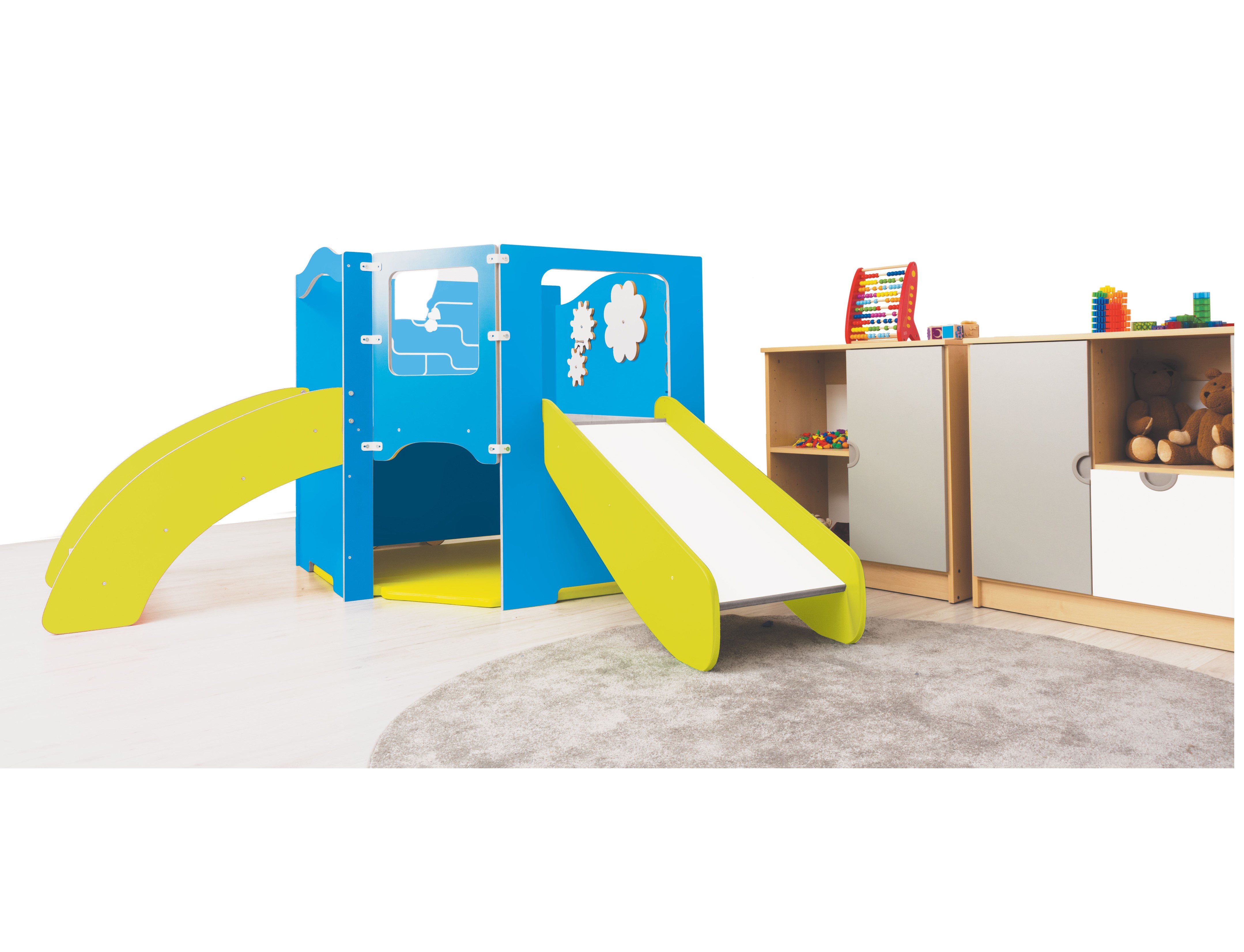 Struttura motoria ” metropolitana” area giochi orientata verso lo sviluppo a tutto tondo dei bambini. Fornisce molte attività interessanti che soddisfano le esigenze dei bambini piccoli. L’angolo attività ha due livelli, scale, una finestra plexiglass e una diapositiva. C’è anche un po ‘di spazio per nascondersi quando si gioca a nascondino. Per coloro che amano manipolare ci sono ruote dentate e labirinti . Il prodotto è per l’uso in ambienti chiusi, richiede montaggio e non è permanentemente collegabile al pavimento.
