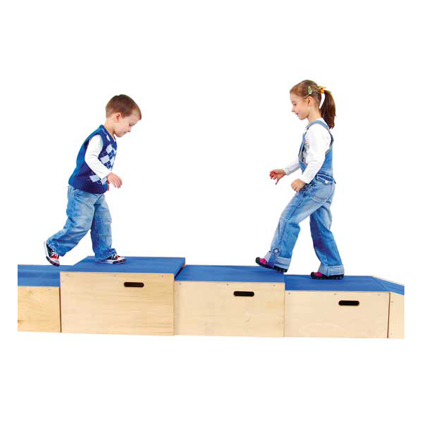 Realizzate in robusto legno multistrato con spigoli raggiati, ben levigato e rifinito al naturale con vernici trasparenti atossiche all’acqua.I fianchi sono provvisti di feritoie che fungono da maniglie per lo spostamento e la faccia superiore è rivestita in soffice moquette antiscivolo di colore blu.