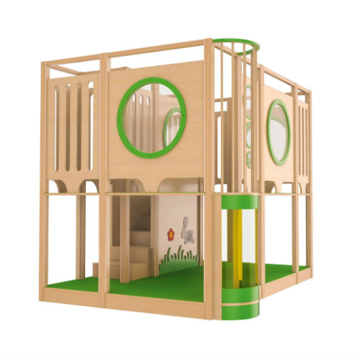 Questo percorso a due piani realizzato in legno massello di betulla lucidato al naturale  offrirà molto divertimento attraverso i giochi di esercizio. Elementi aggiuntivi  curati in ogni dettaglio assieme a  pannelli sensoriali studiati su misura con un design moderno , stimolano i cinque sensi del bambino  e sviluppano motoriamente  il coordinamento visivo-motorio.                                                     Dim.274cm x 205 cm x 225 cm