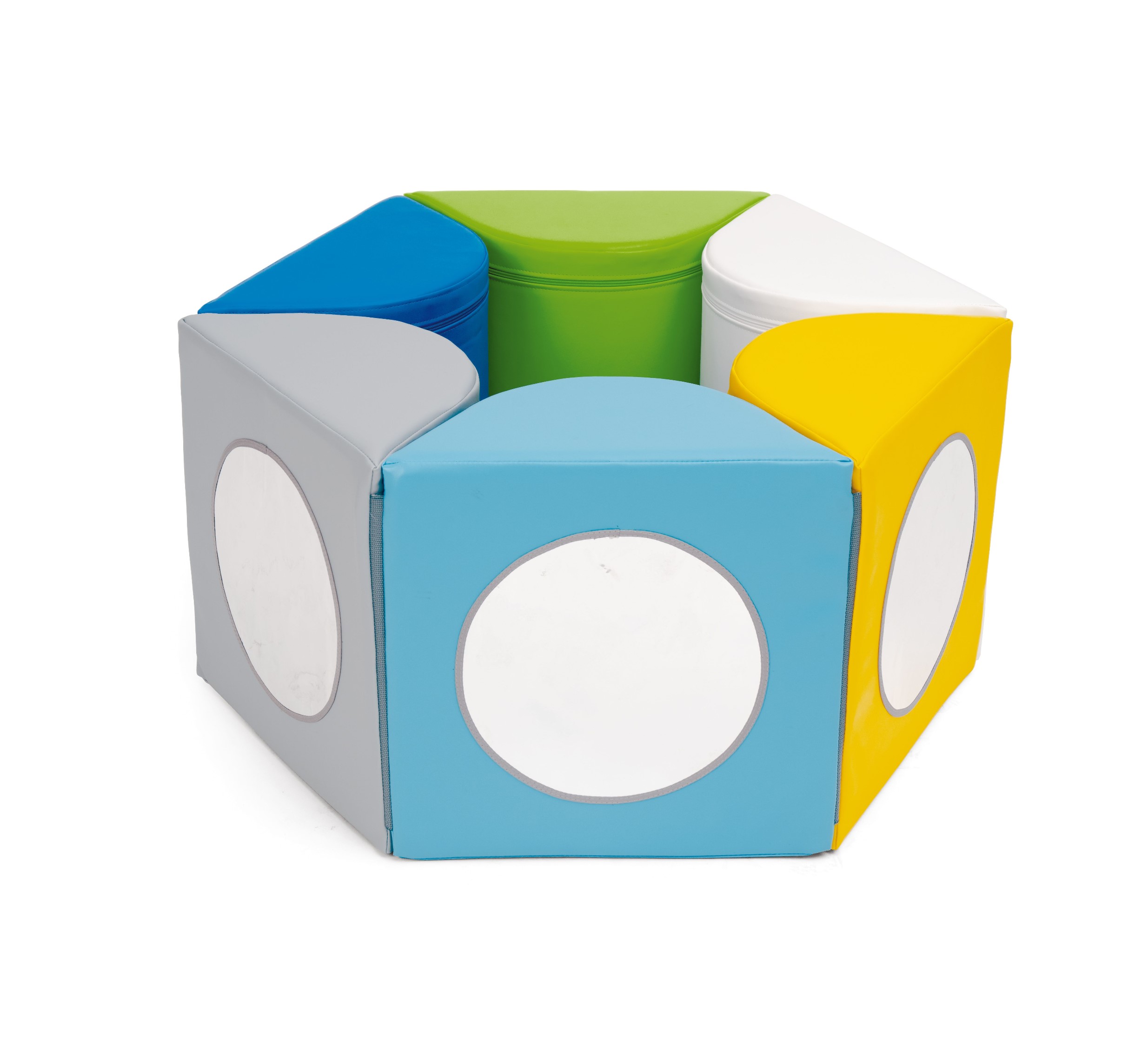 Il percorso ad ostacoli è costituito da moduli che, una volta collegati, formano un cerchio e un fiore. L’intera costruzione è stabile grazie al Velcro al fissaggio. Il corso è ideale per le attività che sviluppano capacità motorie lorde e fini. È inoltre dotato di specchi per stimolare la vista.