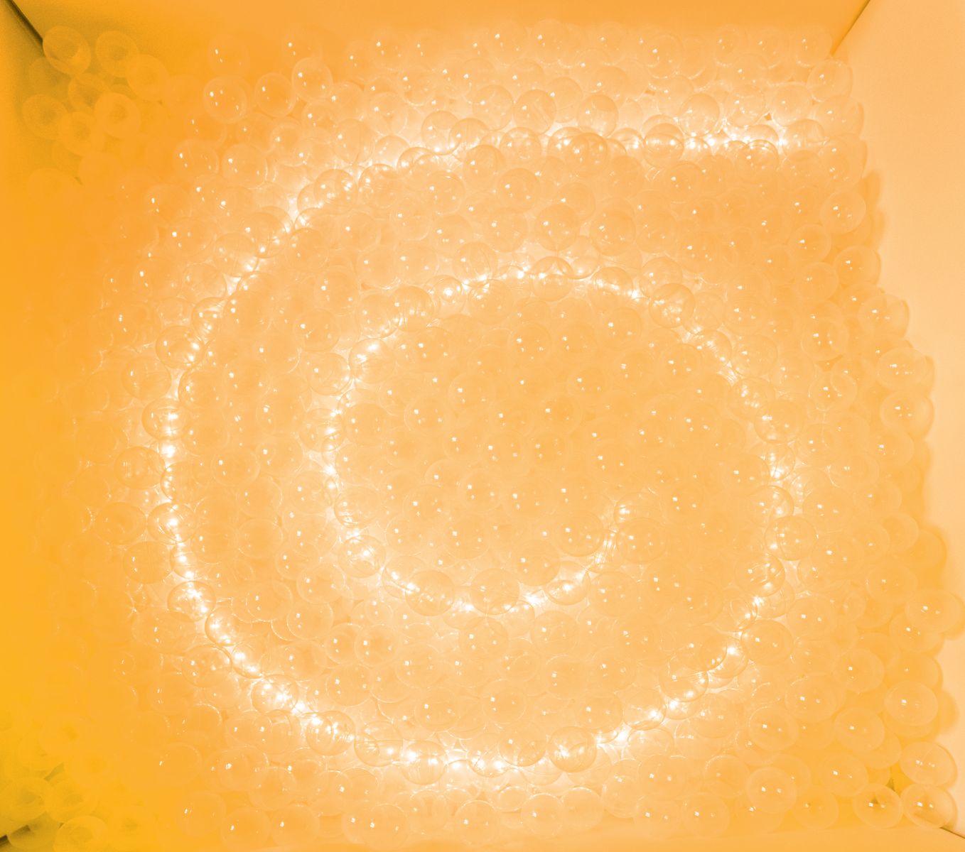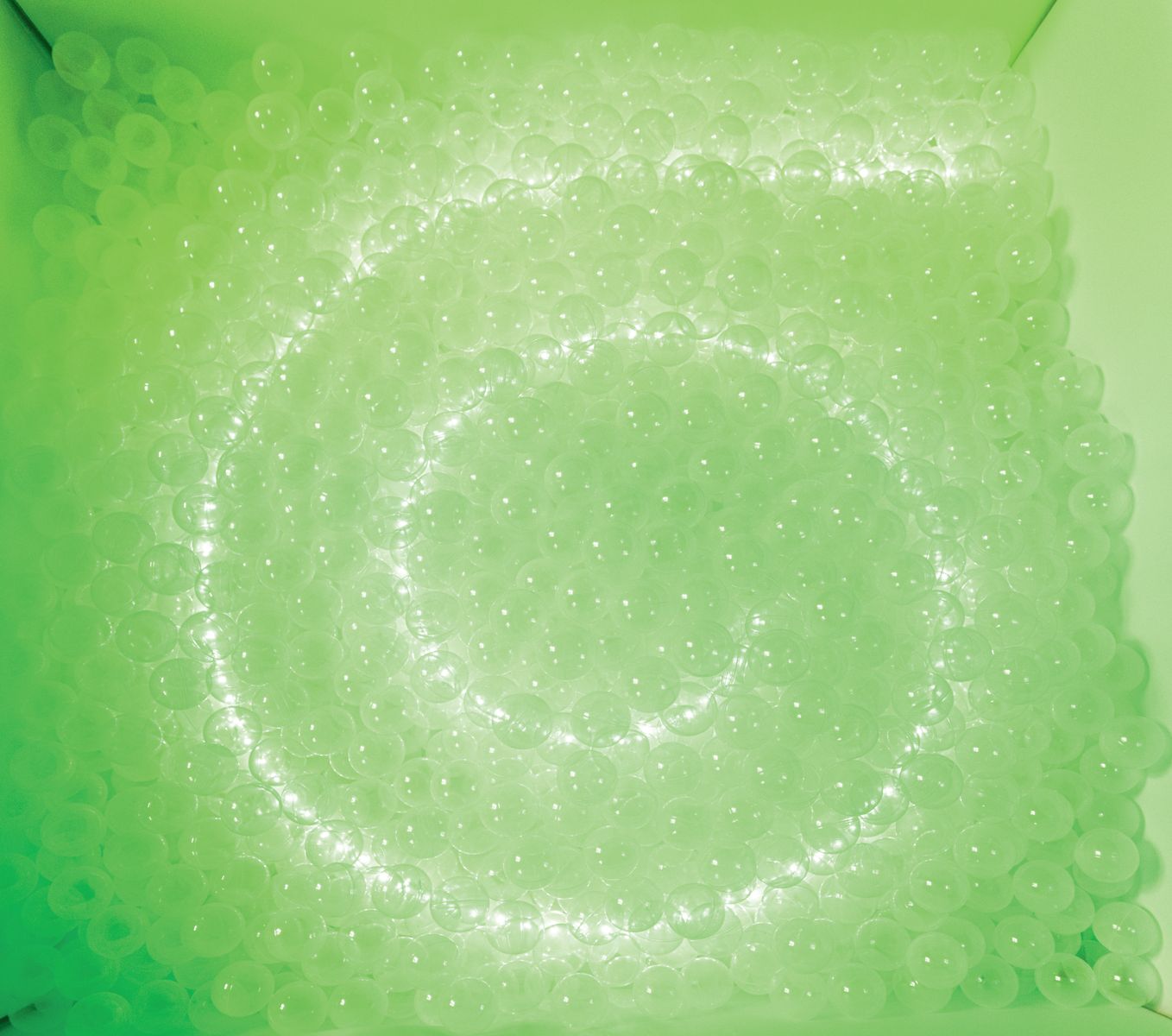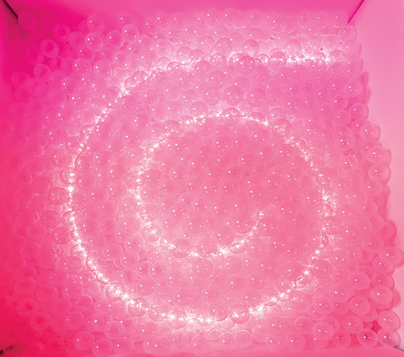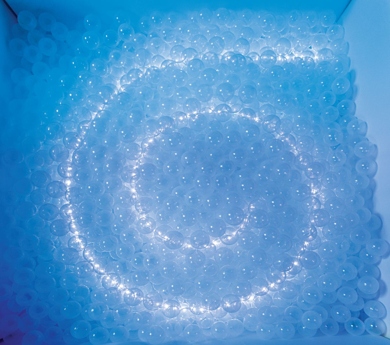 L’interno della piscina è riempito con palline di plastica trasparenti che stimolano i recettori tattili e alleviano le tensioni muscolari; SONO VENDUTE SEPARATAMENTE CON IL CODICE AA1688.
