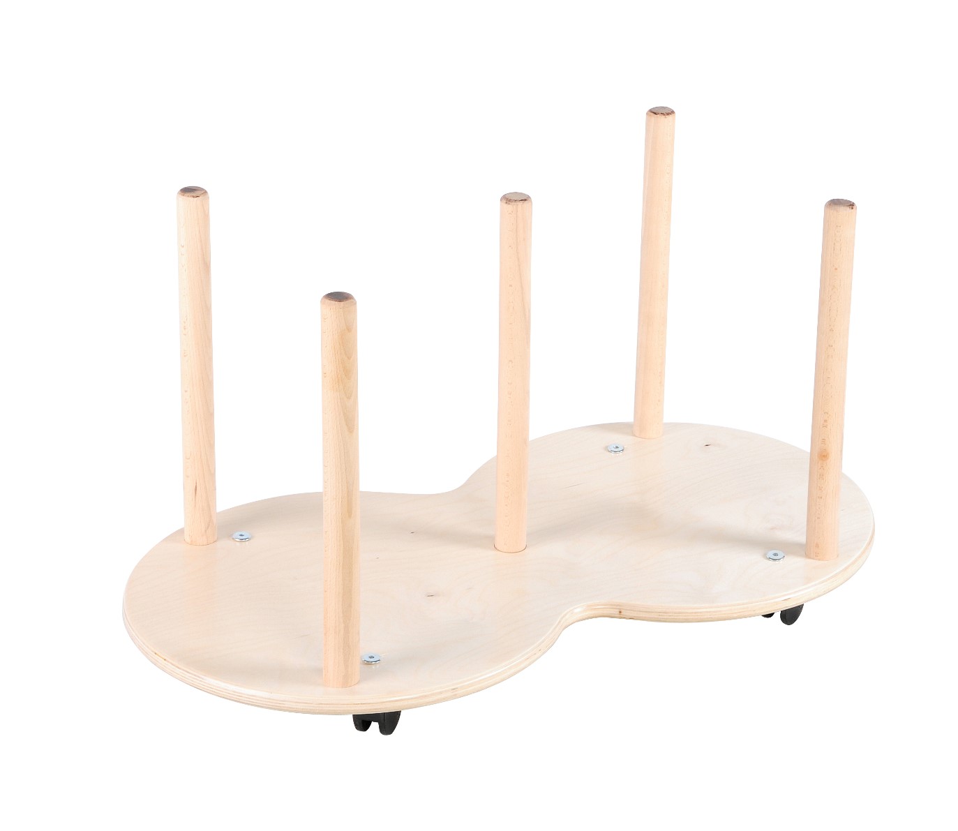 Supporto in legno massello lucidato al naturale su ruote dello spessore di 18 mm, per 20 pouf.