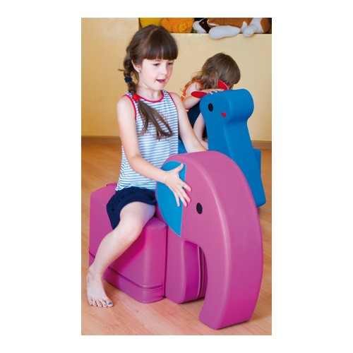 Un bel pouf a forma di elefante, divertente ed accogliente accompagna il bambino nei momenti di gioco.