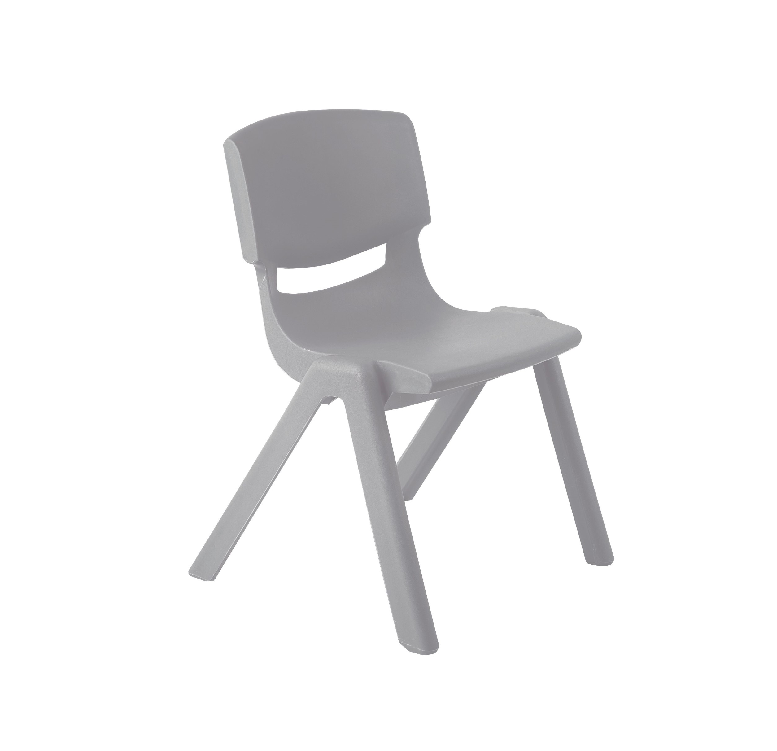 Una robustissima sedia realizzata con plastica di alta qualità di colore grigio, ignifuga e impilabile. Lo schienale permette di appoggiarsi comodamente ed è dotato di foro per un facile spostamento.