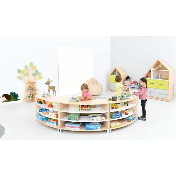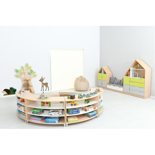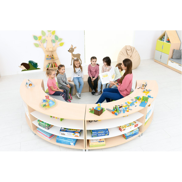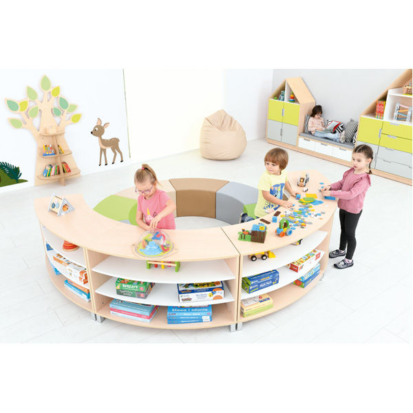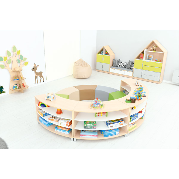 Set composto da 4 pouf realizzati in schiuma rivestito in PVC privo di ftalati e 4 mobili Astro realizzati in forte laminato facilmente lavabile . Questo set vi darà la possibilità di dividere le area in maniera fantasiosa utilizzando al meglio lo spazio. Potrai scegliere il colore dei mobili tra color acero ( come in foto ) o bianco su ordinazione.
