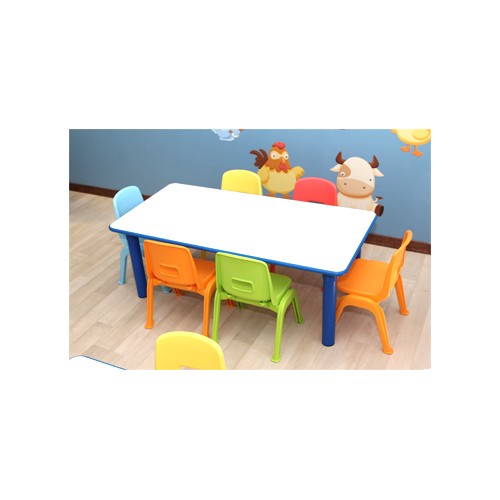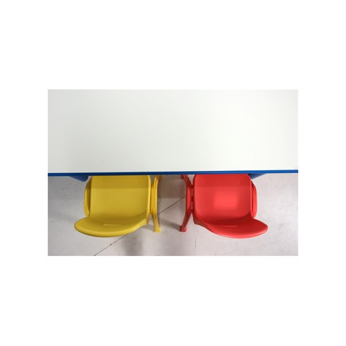 Set composto da un tavolo rettangolare + 6 sedie “Arcobaleno” colorate. Utilissimo set risparmio colorato e vivace per Asilo Nido, Materna.