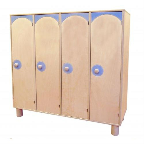 Spogliatoio con ante a 4 posti in legno multistrato di betulla, spesso 18 mm. Verniciato al naturale con bordi e particolari in azzurro.