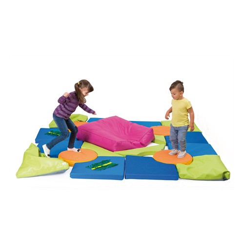 Grazie ai colori vivaci e alle imbottiture varie questo tappeto permette al bambino di svolgere varie attivià senoriali legate al tatto e alla vista.