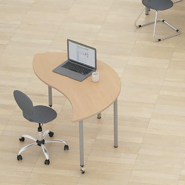 In questo modo puoi passare rapidamente dal lavoro individuale a quello di gruppo. Scivoli di plastica sulle gambe impediscono di graffiare il pavimento.