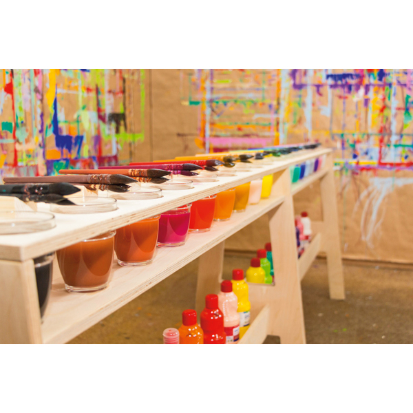 La tavolozza dei colori è al centro di una sala di pittura, dove piccoli e grandi appassionati di pittura si incontrano per dedicarsi interamente alla pittura. L’ordine e la struttura definiti dei colori supportano il processo di verniciatura grazie al telaio di supporto affidabile. Inoltre, le dinamiche di gruppo sono promosse nell’interazione sociale tra loro.